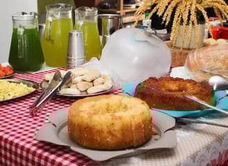 Café da manhã, almoço, café da tarde e jantar. Tudo feito com muito carinho e com o sabor da roça.